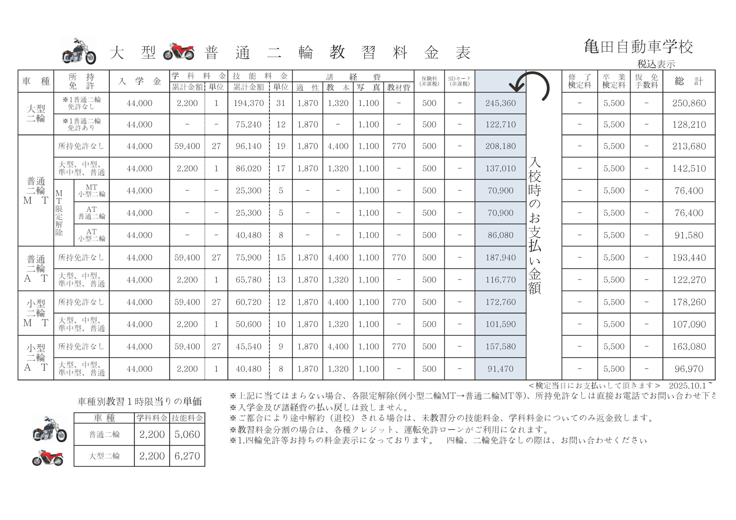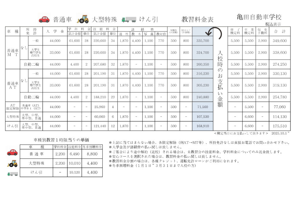 ↓クリックするとPDFが開きます。(車種別教習時限数は